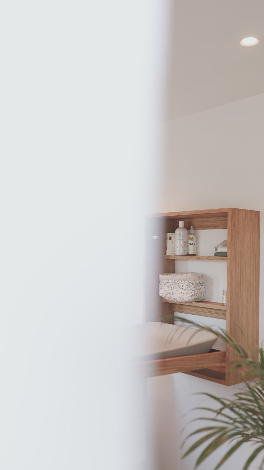 Karli er skabt med tanke på at et væghængt puslebord godt må være et smukt møbel og skal kunne mere end blot at være et puslebord.